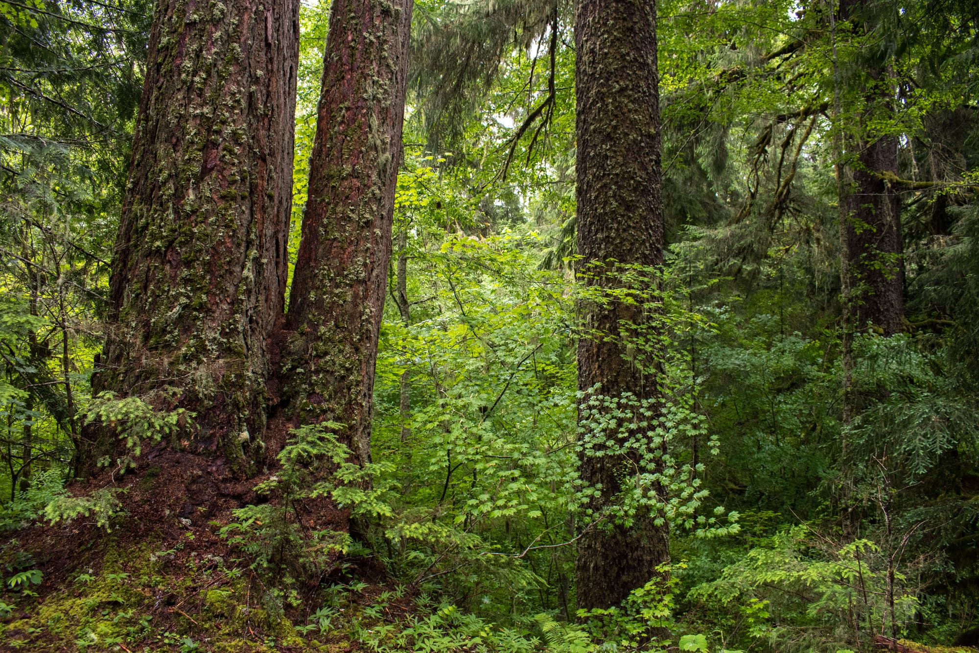 But far outshining the benefit of a brief visit is the year-round benefit it brings to all who call it home. You'd be hard-pressed to find the invasive species that abound in the heavily disturbed forests nearby, and it is a sanctuary for the multitudes of flora and fauna that rely on these ancient and complex ecosystems. These old forests capture carbon with vast efficiency compared to the regularly harvested timber that will likely find its way to the landfill within decades. They sustain summer streamflow significantly better than the thirsty roots of young forests. And the tall canopy works effectively to cool the air and waters that they shade, a far more resilient forest in the face of wildfires than the young Douglas-fir monocultures and slash piles next door. All of this increasingly important in the face of our rapidly changing climate.
