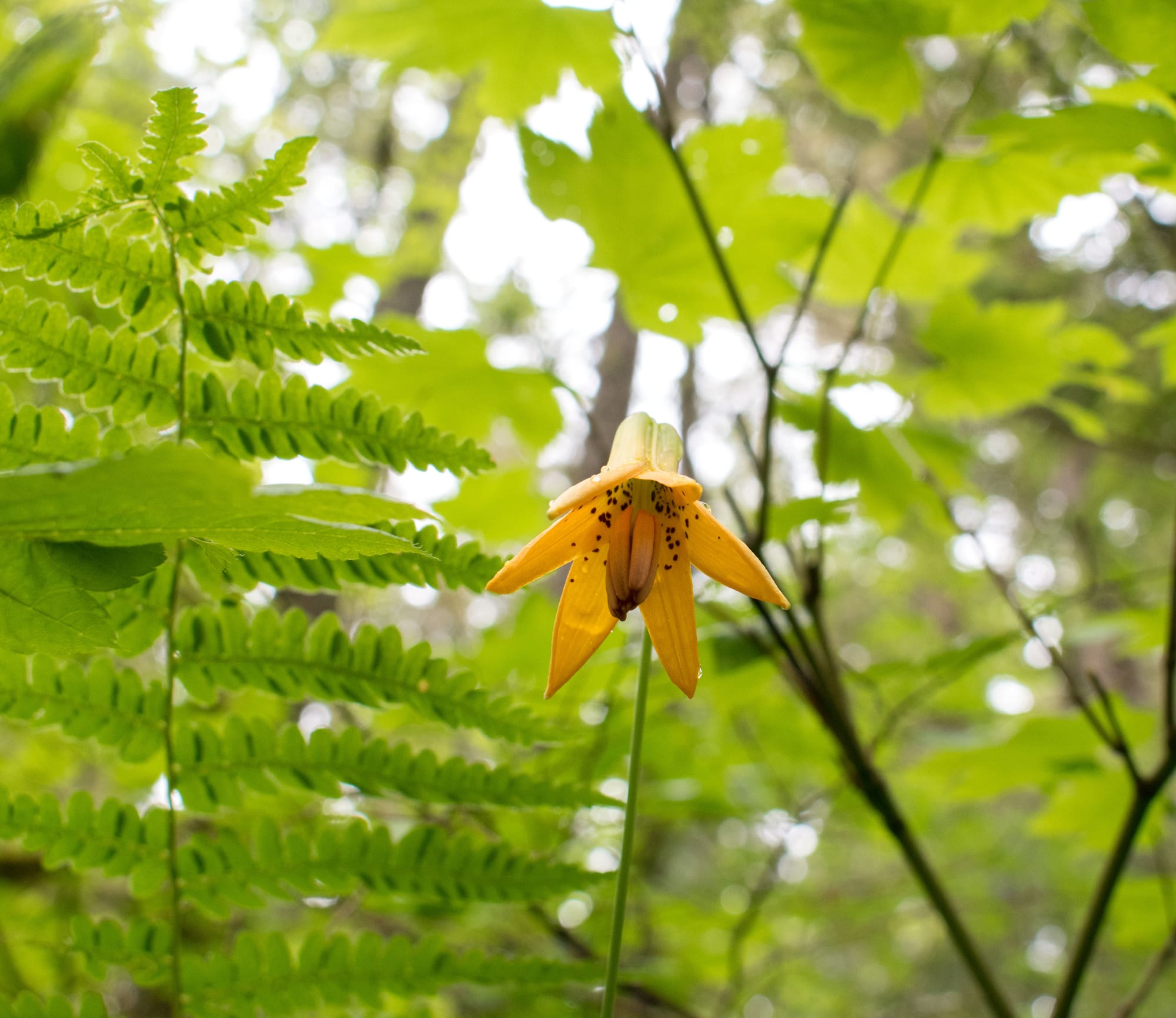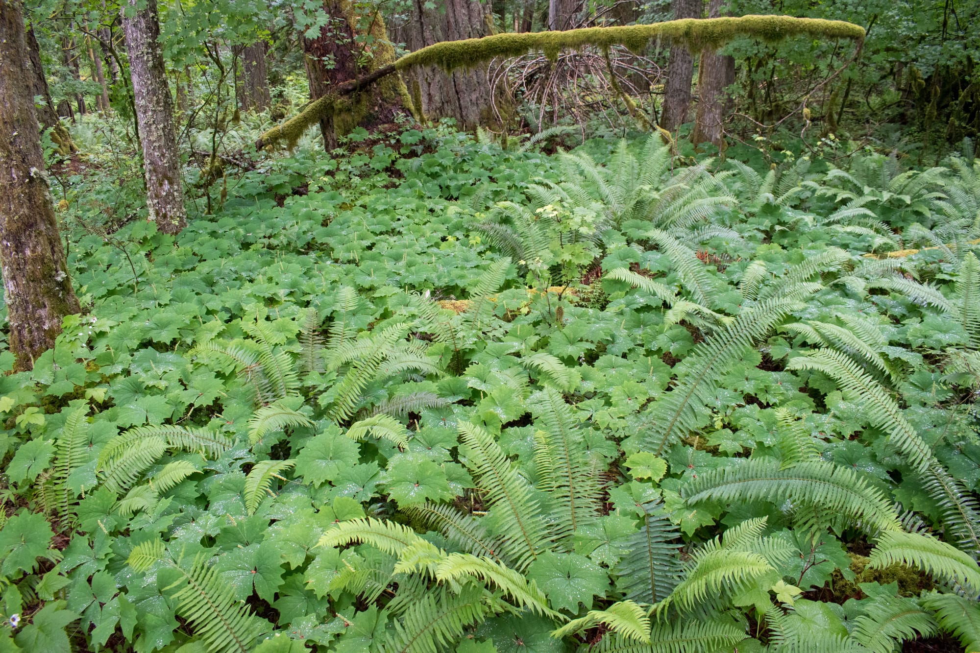 Scouler's Corydalis, Tiger Lily, and acres upon acres of Vanilla Leaf and Sword Fern.