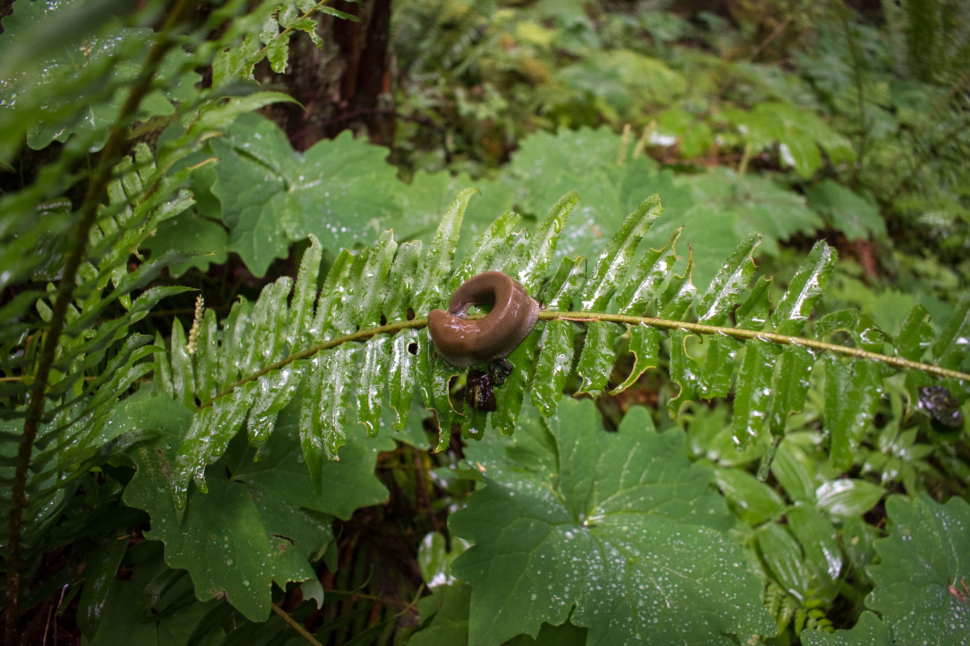 As the drought lingering over the PNW was pierced by a single rainy day a few weekends ago, Catelynn and I took our good friend, Sadie, out to a nearby stretch of old growth forest to tromp around and enjoy the refreshingly saturated air. It's a grim journey to reach it; 40 minutes of suburban sprawl, followed by 20 of clear cuts teeming with Himalayan Blackberry, Scotch Broom, and Foxglove. They are deceptively beautiful this time of year with their vibrant blooms, but they are a symbol of the ecologically irresponsible practices that are threatening large swaths of this land. Despite all this, there remains a small stronghold of biodiversity buffering the highway for a couple miles between town and the relative protection (for now) of the national forest.