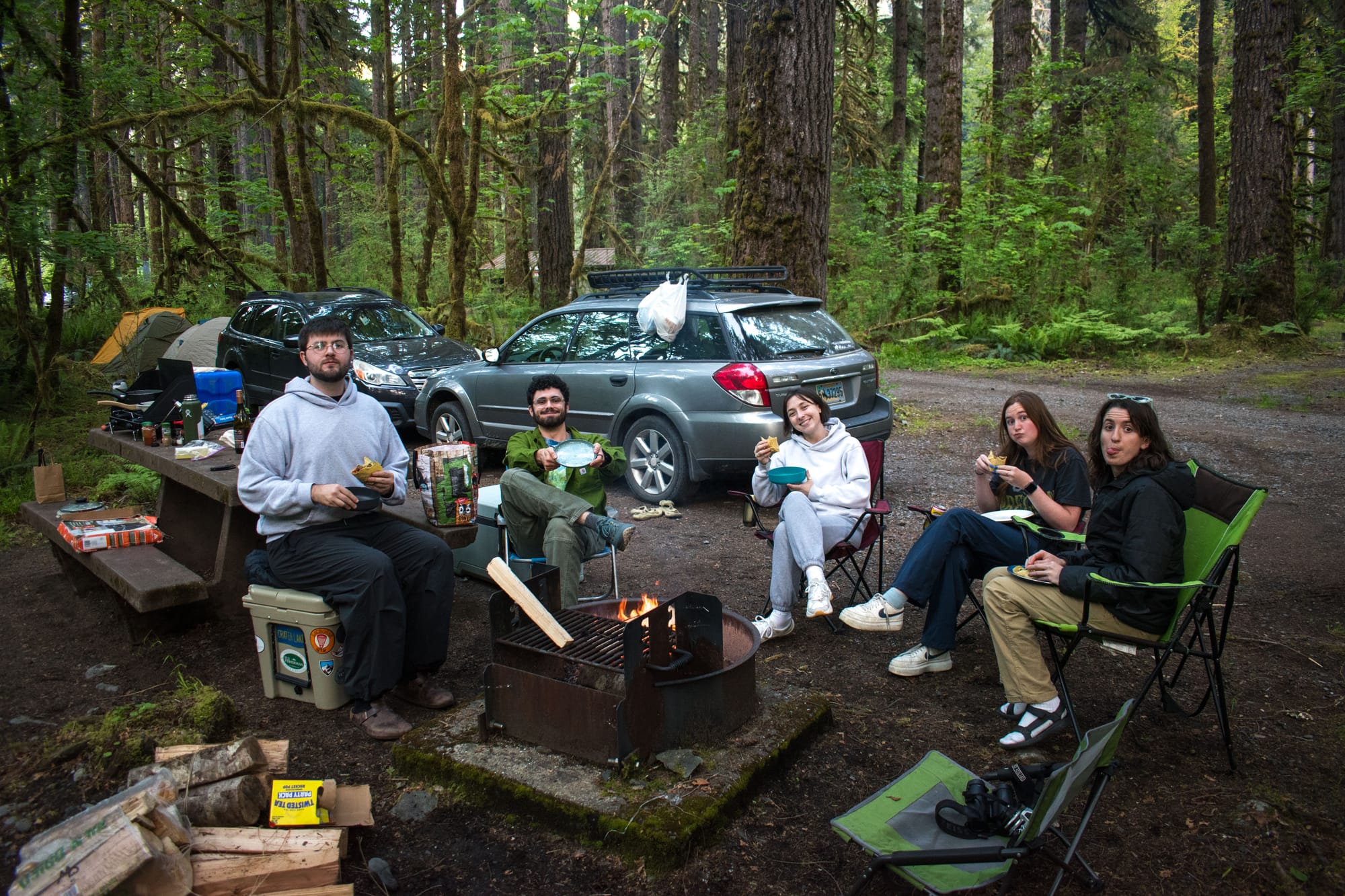No more than 20 minutes later, the Portland crew (Sophie, Collin, Brendan) rolled in too. With a surprise guest, the one and only Allie Deere(!), who flew up from San Diego to give us a second chance with birthday camping trips (the last was 4 years ago now, wow). What great friends we have 😃