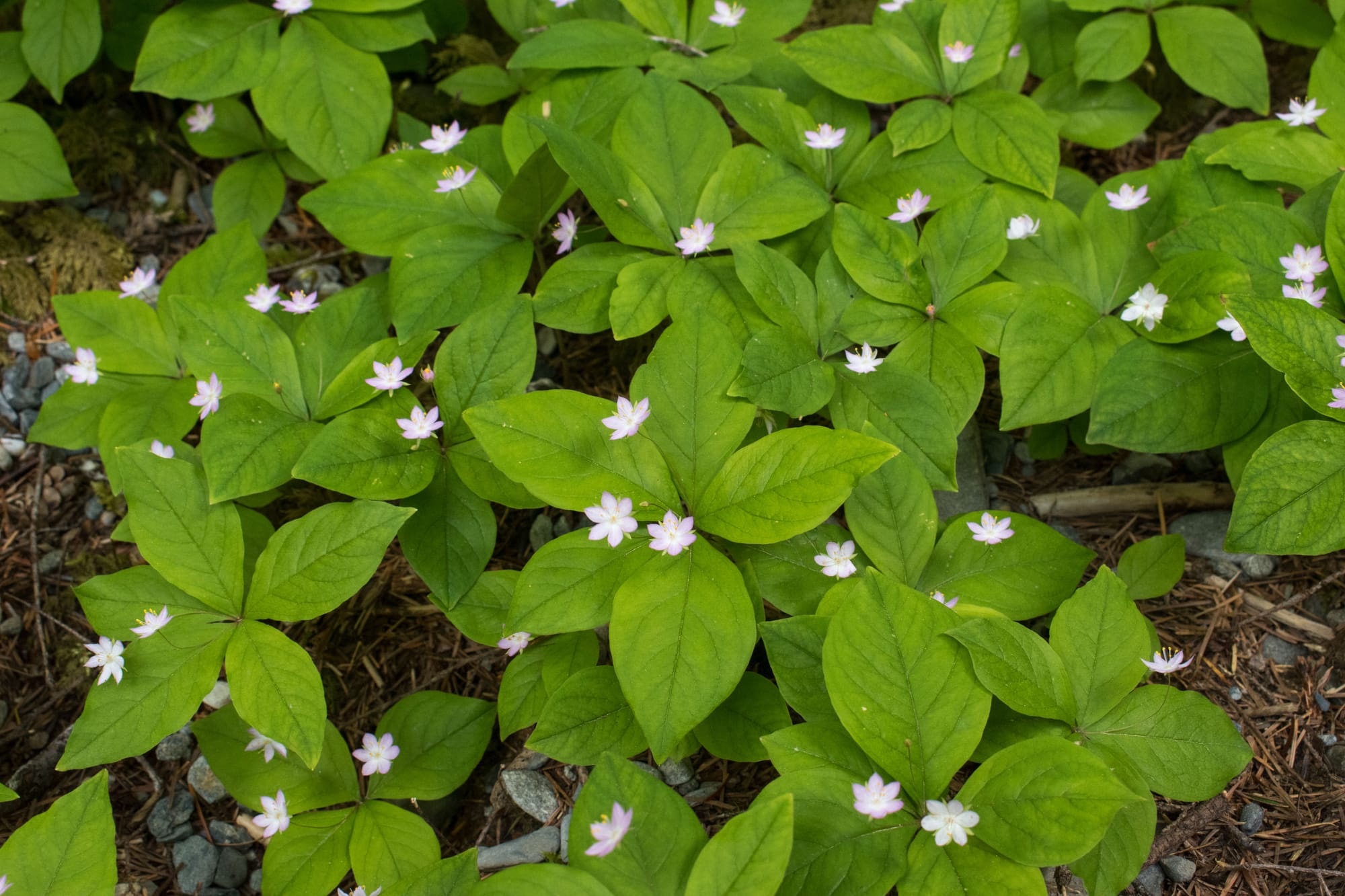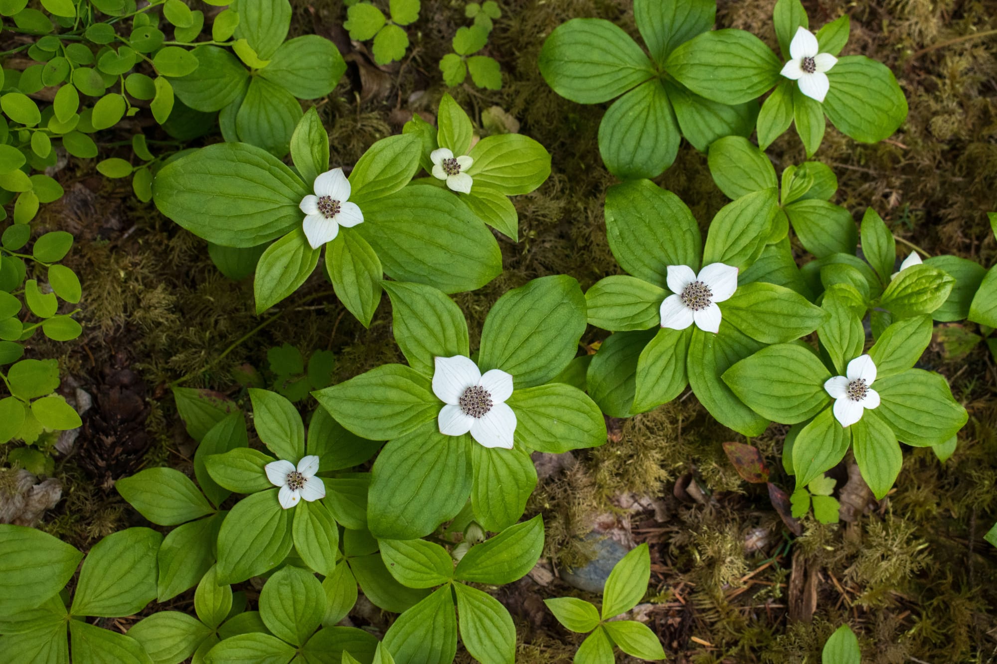 Starflower and bunchberry everywhere!