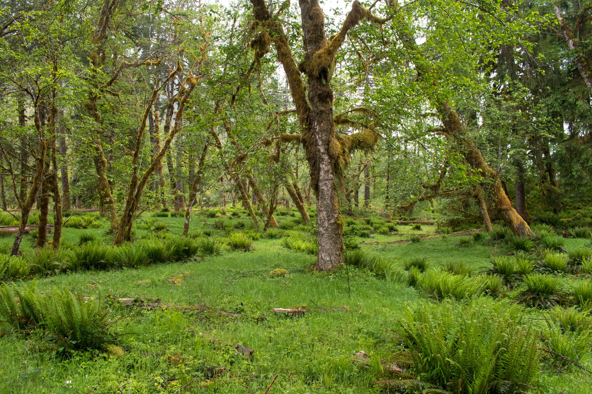 The next morning brought rain. Not enough to dampen the day, but enough to give everything a fresh glow for my walk through the adjacent meadows and stands of bigleaf maples. I am almost sure this is the best place.